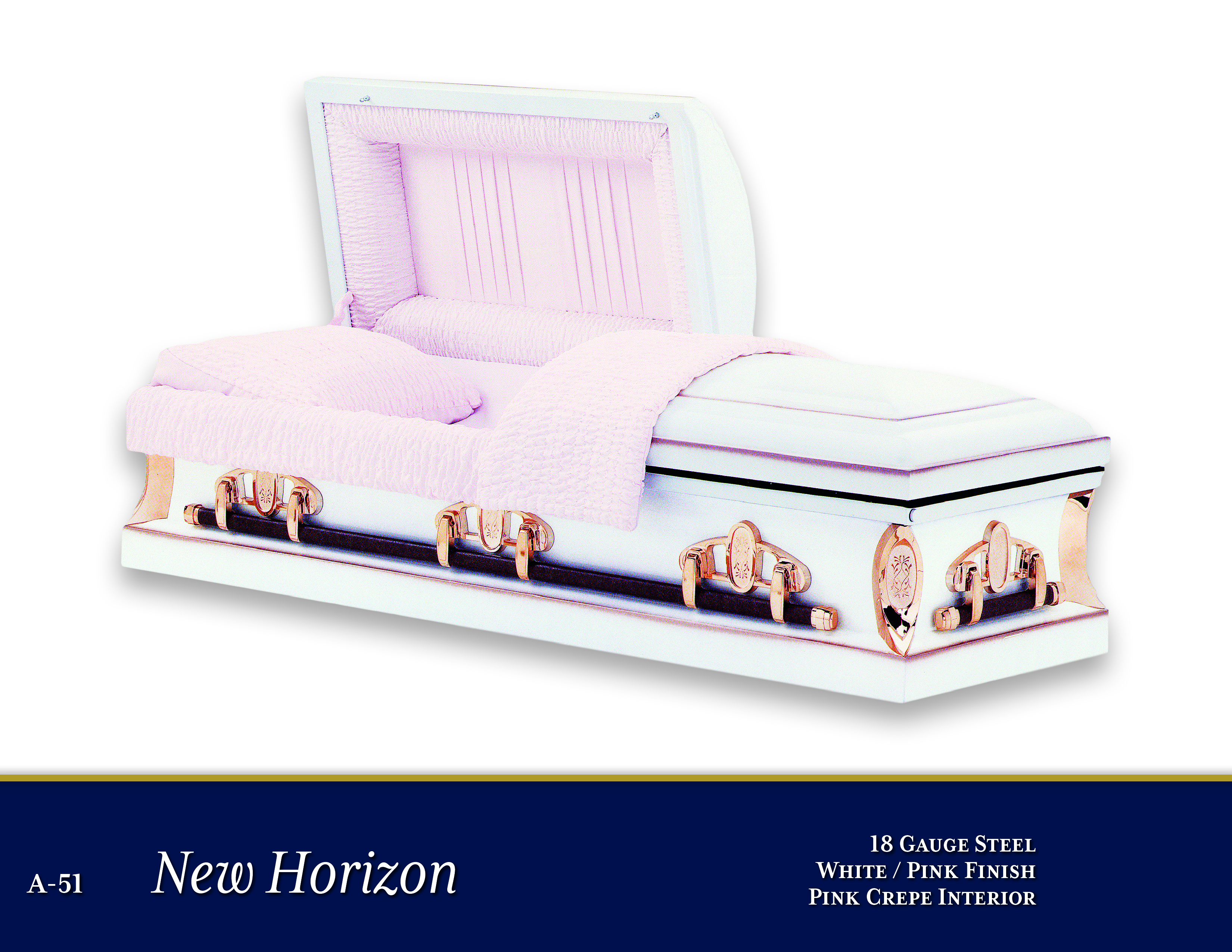 18 Gauge SteelWhite/Pink FinishPink Crepe InteriorOpen Shareable Image