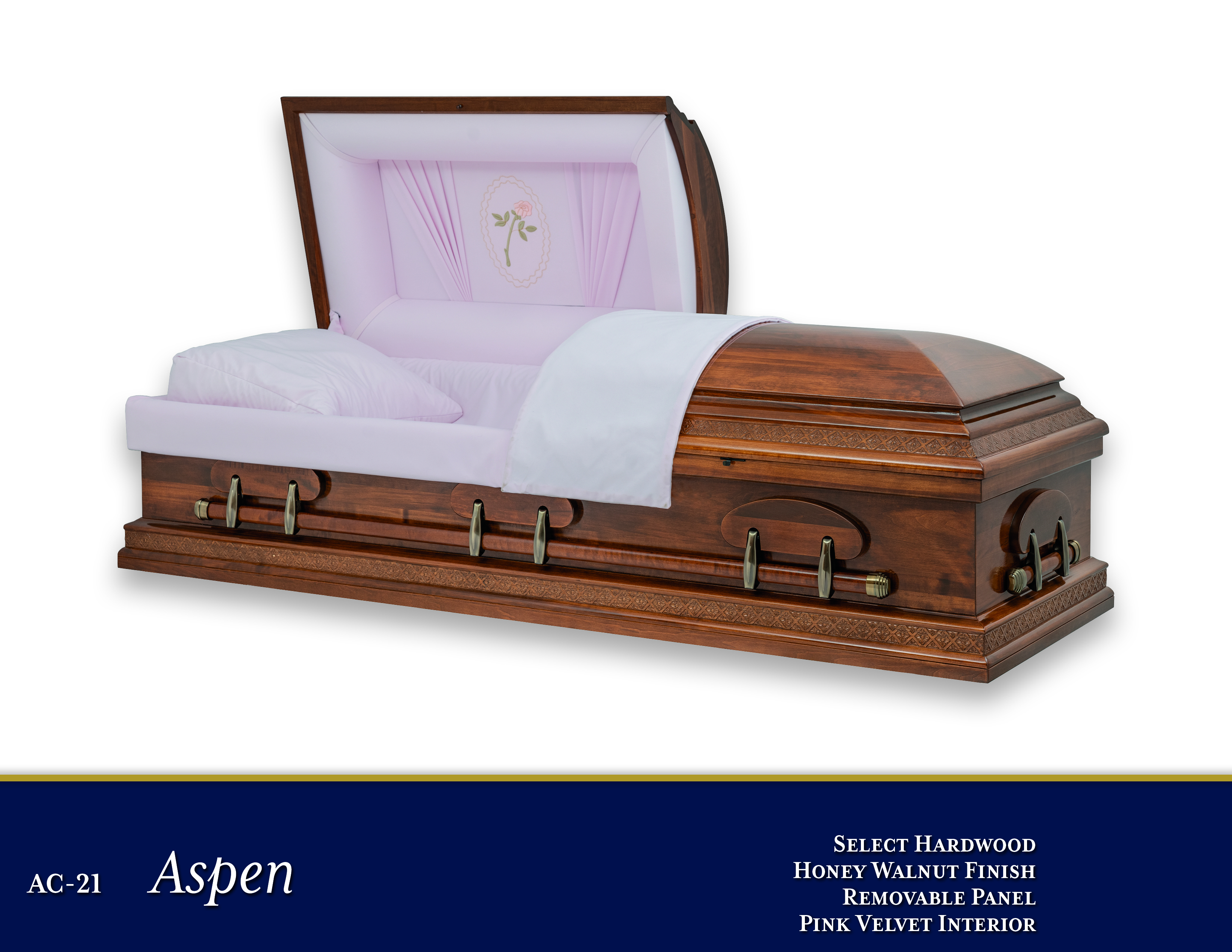 AC-21 Aspen$5,195.00PriceSelect HardwoodHoney Walnut FinishPink Velvet InteriorFlower Emblem RemovableOpen Shareable Image