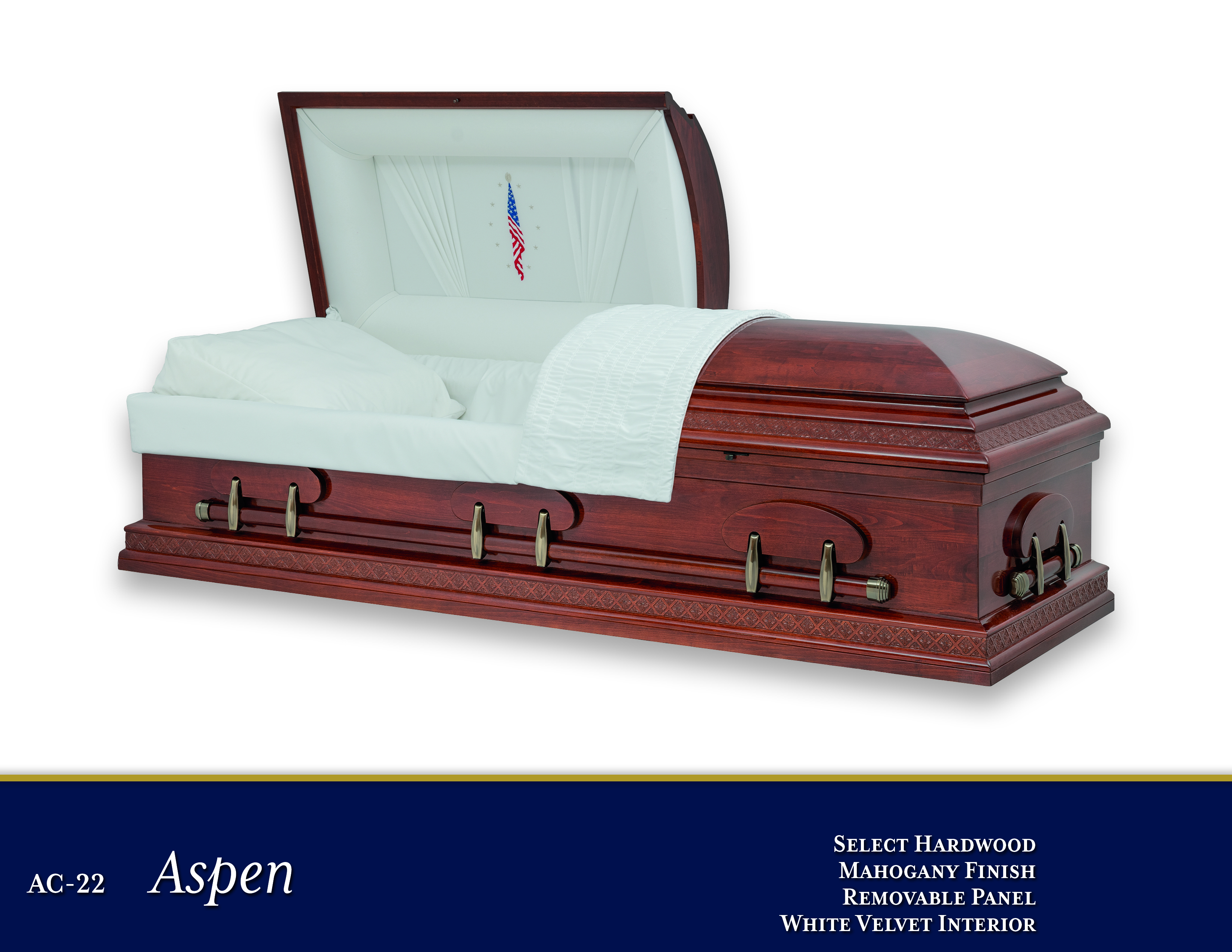 AC-22 Aspen$5,195.00PriceSelect HardwoodMahogany FinishWhite Velvet InteriorFlag Emblem RemovableOpen Shareable Image